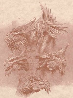 [edit]There are two primary types of dragons: chromatic dragons, and metallic dragons. Chromatic dragons are typically evil, tyrannical conquerors that delight in the pain and suffering of others. Metallic dragons typically strive to live virtuously and avoid causing undue harm to others. There are, of course, always exceptions.