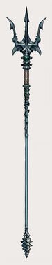Drown is a magical steel trident decorated with bronze barnacles along the upper part of the haft. A sea-green jewel is set just below the tines, and a silver shell adorns the end. It floats on the surface if dropped into a body of water, but floats in place if released underwater. It is cold to the touch, chilling those it strikes in combat with magical cold. It grants its wielder the ability to speak Aquan and dominate water elementals, as well as the ability to breath underwater It contains a spark of the primordial Olhydra.