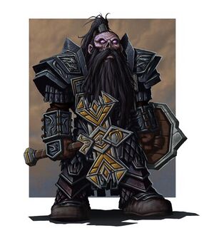 The Ebon Riders are led by a bloodthirsty dwarf named Mauglurien, the Black Dragon, who formed them out of a particularly brutal gang of bandits. Eventually some of the mercenaries, feeling that Mauglurien's leadership was too brutal, broke away, taking all but the most loyal of the dwarf's mercenaries with them. Furious at their betrayal, Mauglurien pledged his service to the demon lord Orcus and performed a vile ritual to transform himself into an undead death knight. With his newfound unholy strength, Mauglurien tracked down the mercenaries who had left the Ebon Riders and brutally executed them to a man.