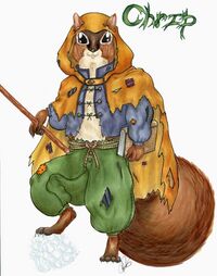 Chrip is a kercpa sorcerer with a mastery over cold and storms. Chrip loves harmless pranks and stealing things just for the challenge. That is what landed him in the company of the Challengers of the Unspeakable (he still doesn't understand this name as they seem to do quite a bit of speaking). His sense of humor got him into a bit of trouble with a certain humorless Prince. Before he knew it, he was caught and kicked through a portal to the wasteland where he met the adventurers while he was trying to get past some boring, old man with a funny stick.