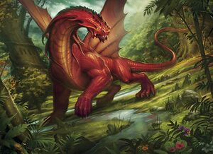 Orium dragons prefer to live amidst the crumbling ruins of ancient civilizations, and particularly favor jungles - accordingly, they are found almost exclusively in Estorium. Orium dragons crave not just gold and jewels but history and ancient secrets; the ruins that serve as their lairs are often seen as their greatest treasures. They have little patience for mortals, though will happily make use of them if they can either add to their collections of ancient lore or restore the dilapidated ruins to their former glory.